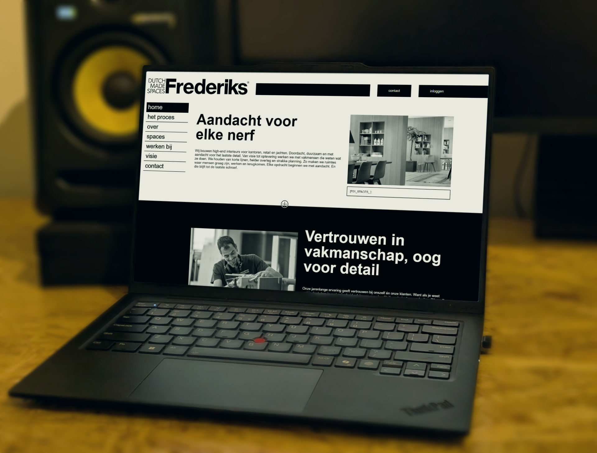 In opdracht van Canned Rainbow heb ik de website voor Frederiks Interieurs technisch gerealiseerd. Het ontwerp was sterk typografisch van aard en in grote lijnen uitgewerkt voor desktop. Content, mobiele uitwerking en interactie lagen nog open.